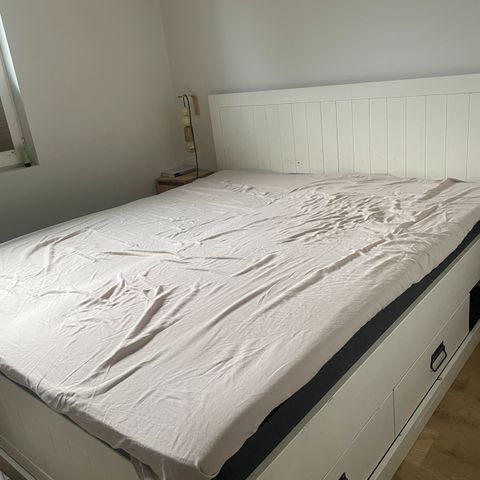 Tyhjennän Airbnb-asuntoa ja myyn pois ison hyvän Ikean sängyn. Sänky on ollut vain asiakaskäytössä. Runkona ruskea vahva puurunko, jonka päällä 2 x 90cm patjaa. Näiden päällä 180cm leveä memory foam petauspatja ja sen päällä patjansuojus. Patjat Ikeasta ja patjansuoja Jyskistä. Varastossa 2 x ruskeaa nahkaista taustatyynyä sängyn päätyyn, jotka näkyvät muutamissa kuvissa.