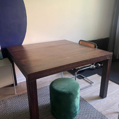 Suomalaisen puusepän tekemä tamminen 4-hengen ruokapöytä