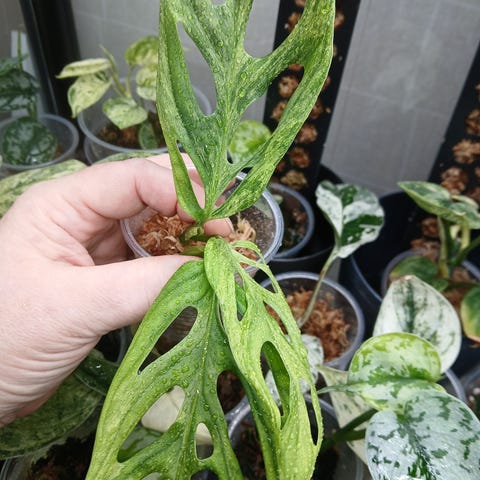 Kolme lehtinen Thaikku-peikon taimi runsailla juurilla sekä kasvussa. Vanhin lehti kokenut käsittelyssä vauriota. Uusin lehti ei vielä valmis, siitä johtuen vaaleampi väritys.
