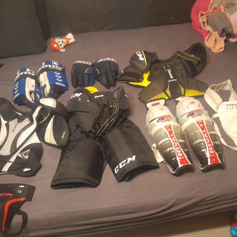 CCM Tacks jääkiekko housut, koko Junior. Sisäpuolen pehmusteet kuluneet ja yksi osa tippunut pois.