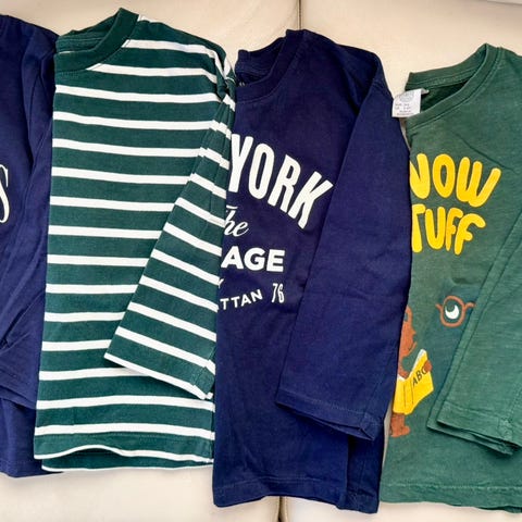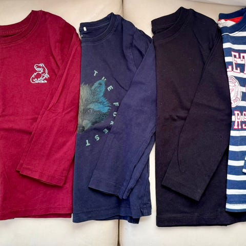 Myydään settinä puuvillaisia pitkähihaisia. Värit eivät ole ihan niin kirkkaat etenkin punaisten, keltaisten ja raidallisen paidan osalta. Merkkeinä lindex, kappahl, name it ja diy. Pidetty koossa 98-104, joitakin käytetty kummassakin koossa.