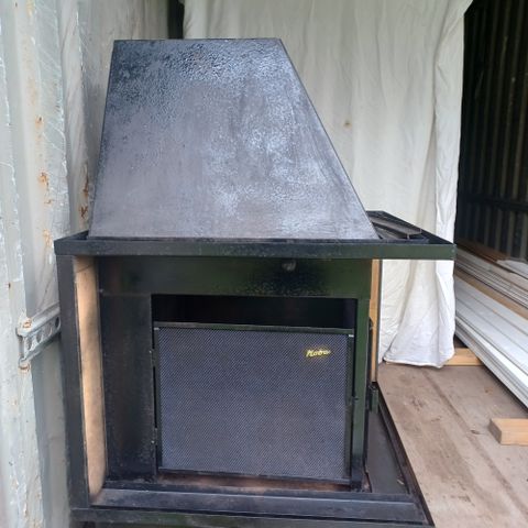 Puulämmitteinen kevyt takka, jossa on lasiluukut. Kiuas on valmistettu pellistä ja sisusta on tiiltä ja kiveä. Hyvä kompromissi nopean lämmöntuotannon ja varaavuuden suhteen! Paino n. 150-200kg, eli vaatii useamman siirtelijän. Tiilikärryt löytyy, mutta vaatii silti useamman siirtäjän. Takka on nyt peräkärryssä pressun alla, ja sitä voi lainata kaupanpäällisiksi.
