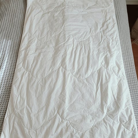 Familon karhunen lasten peitto. Kahdella käytetty. Kunto siisti ja tahraton. tikkausten pohjalla käytöstä tullutta pientä pölyhaituvaa, joka ei päälle päin erotu eikä pesussa lähde. Pesty 60 asteessa, aina valkopyykin kanssa hajusteettomalla pesuaineella.