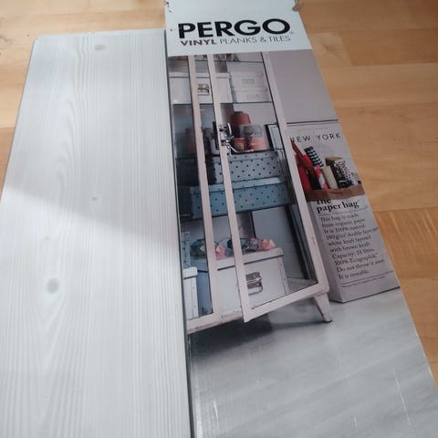 Myydään kolme avaamatonta laatikkoa kestävää Pergo Lysefjord Pad Pro -vinyylilankkua, väri Light Danish Oak.