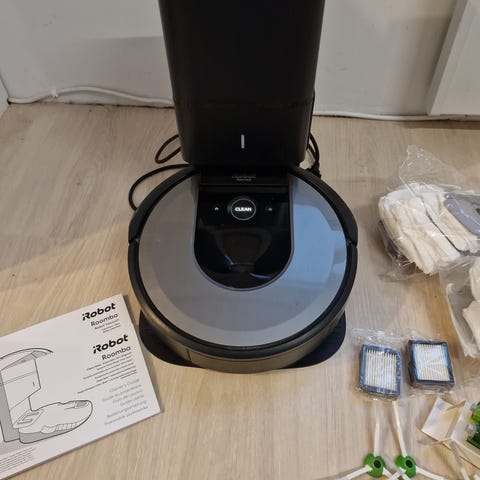 Myydään kuvan iRobot Roomba i7 robotti-imuri + tarvikepaketti.