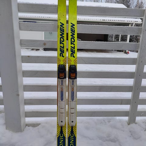 Uudenveroiset 90 cm pitkät lasten sukset ns. kenkäsiteillä. Myydään isompien tieltä pois.