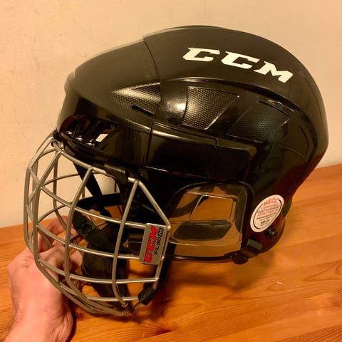 Myydään lapsen kasvettua tarpeettomaksi jäänyt CCM FM50 S jääkiekkokypärä, valkoinen väri, S-koko. Kypärässä on metallinen kasvokaukalo suojaamassa kasvoja pelin aikana. Kunto on hyvä. Koko on säädettävä arviolta kokoluokassa 50-55cm, mutta tämä ei ole varma tieto.