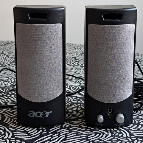 Muut 2.0 stereo tietokonekaiuttimet mustassa värissä. Kaiuttimet tarjoavat basson syvyyttä ja korkealaatuista stereosoundia. Sopivat pieniin tiloihin ja ovat helppo liittää kotitoimisto- tai kotikäyttöön.
