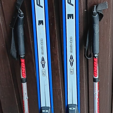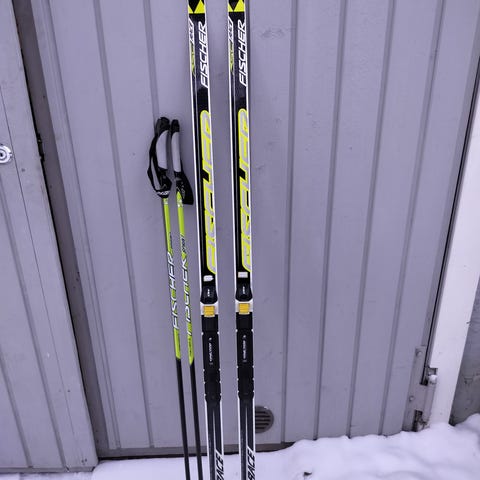 • hyväkuntoiset Fischerin sukset 127cm ja sauvat 93cm