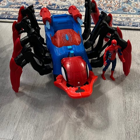 Spiderman lastenlelut, sisältäen Batman- ja Spiderman-hahmot. Lelut on suunniteltu lasten leikkeihin.