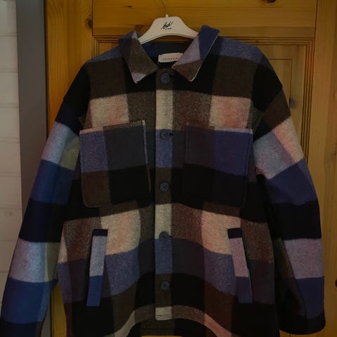 Myynnissä siistikuntoinen Vailent -merkin ruudullinen flanellitakki ohuella tikkivuorella.