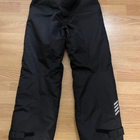 Nuorten toppahousut, joissa säädettävä kuminauhavyötärö stopparilla ja vetoketjulliset sivutaskut. Säädettävät kuminauhat stopparilla lahkeensuun piilotaskussa, jossa säätönyöri pysyy kätevästi. Toisessa lahkeessa heijastava nauha. Polvissa pikkasen kulumaa (kts kuva1), muuten ehjät.