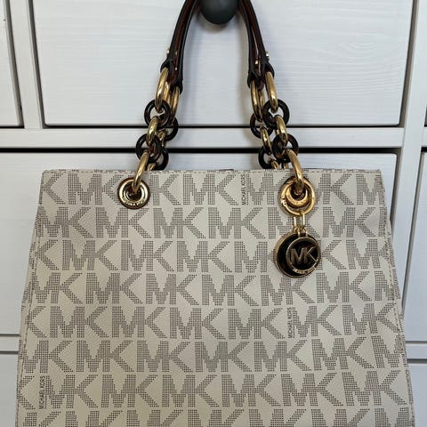 Michael Kors nahkainen naisten laukku ja lompakko. Laukussa on tilava sisätila ja useita taskuja, mukaan lukien vetoketjutasku. Väri on ruskea, ja materiaali on aito nahka.