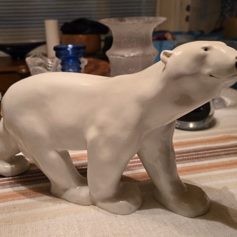 Komea jääkarhu. Ei vikoja. Tehtaan leima pohjassa. koko noin 26,5x29x19 cm. Postikulut päälle tai nouto Lappeenrannasta.