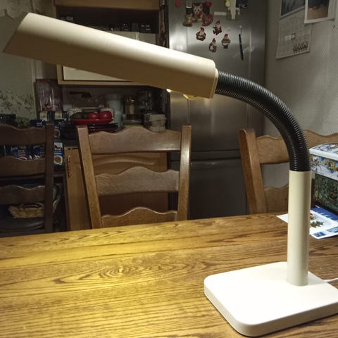 Vihreä vintage pöytävalaisin Catalina 90: luvulta, valmistettu metallista. Soveltuu työpöydälle tai lukuvaloksi. Virtajohto ja kytkin näkyvissä.