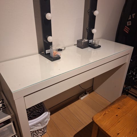 Siisti ja hyvässä kunnossa oleva meikkipöytä. Peili ja valot myös minulla myynnissä.