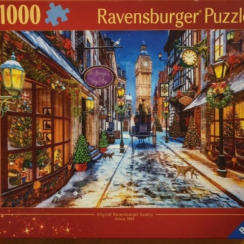 Ravensburger Advent Calendar joulupuzzle, jossa on jouluteemainen kuva, sopii joulun ajan aktiviteeteiksi. Pakkaus sisältää palapelin, joka voidaan koota päivittäin joulun odotusaikana.