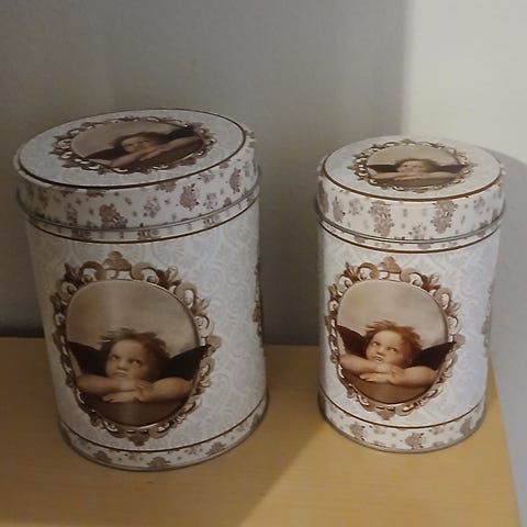 Kaunis, erittäin hyväkuntoinen peltipurkki, korkeus14,5 cm ja läpimitta 11 cm, 6 e + mahdolliset postikulut
