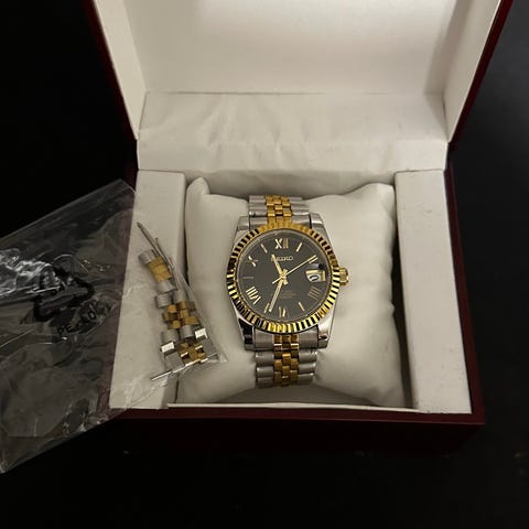 Uusi käyttämätön, itse rakentamani SeikoMod -rannekello. Sisällä Seiko NH35 automaattikoneisto. Kellon rungon halkaisija 40mm. Kellorasia kuuluu kauppaan.