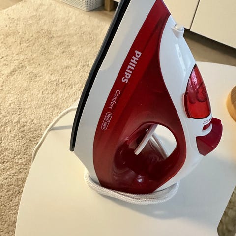 Höyrysilitysrauta valkoinen ja musta väri, sähköllä toimiva, mukana kangaspussi ja johdon pidike. Silitysraudan pohja on metallia ja siinä on höyryaukot. Sopii kotikäyttöön vaatteiden silittämiseen.
