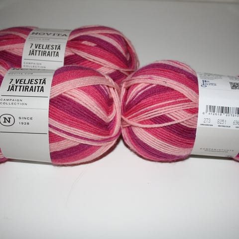 Novita 7 veljestä lankaa 2 kerää. Hinta yhteensä 5 €