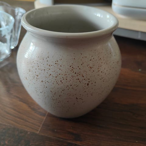 Pentikin uutta vastaava halla maljakko. Yhdessä kuvassa mittanauha kokoa mallintamassa