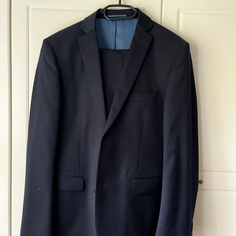 Musta Dressmannin puku. Kerran käytetty eli kunto kuin uusi. Slim fit malli. Takki kokoa 48 ja housut 32.