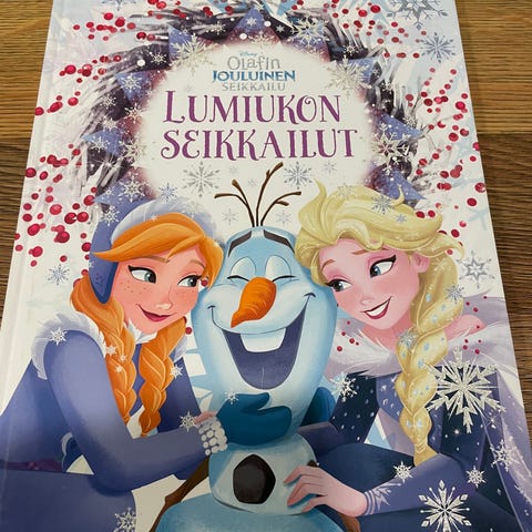 Disney Frozen lasten kirja, jossa on kuvia elokuvan hahmoista Anna, Elsa ja Olaf. Sopii lapsille.