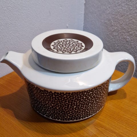 Hyväkuntoinen kannu, mutta kanne sisäpuolella hienoihin krakeloitumia ja yksi viiru laitteessa kannen päällä. Nouto tai postitus.