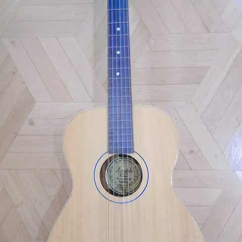 Landola Akustinen kitara. Sarjanumero 235801. Pinta melko vanha, joten pintalakassa on hieman hiussäröjä ja muutama naarmu. Kielet vaihtokuntoiset.