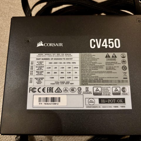 Vähän käytetty Corsair VS550 virtalähde, 550 wattia, musta väri. Soveltuu tietokoneen virtalähteeksi ja sisältää useita liitäntäkaapeleita eri komponenttien liittämiseen.