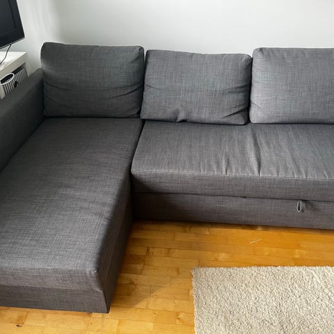 Ikean noin 4 vuotta vanha harmaa Friheten kulmavuodesohva. Divaaniosan alla reilusti säilytystilaa!
