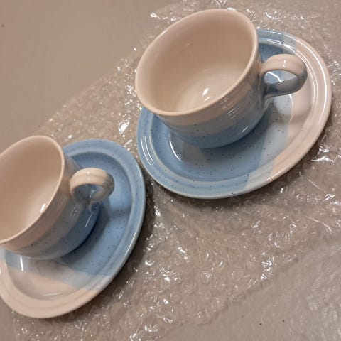 Kahvikupit/ kaksoiskuppi ja lautanen sininen punainen keraaminen