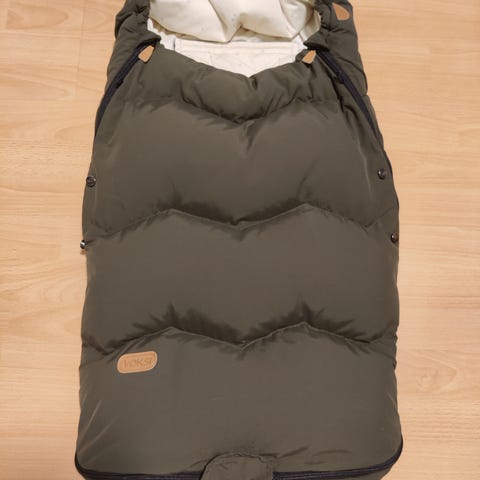 Leudon talvisään untuvalämpöpussi 0-3 vuoden ikäisille. Sopii käytettäväksi myös keväällä ja syksyllä. Väri musta, sisäpuoli valkoinen. Sopii kaikkien valmistajien vaunukoppaan, turvakaukaloon, ratasosaan ja turvaistuimeen. Voidaan käyttää myös pulkassa ja pyöräkärryssä. Puhdas ulkopuolelta. Sisäpuolella yksi tahra yläosan sisäpuolella (katso kuva). Myynnissä myös toinen samanlainen lämpöpussi (vihreä).