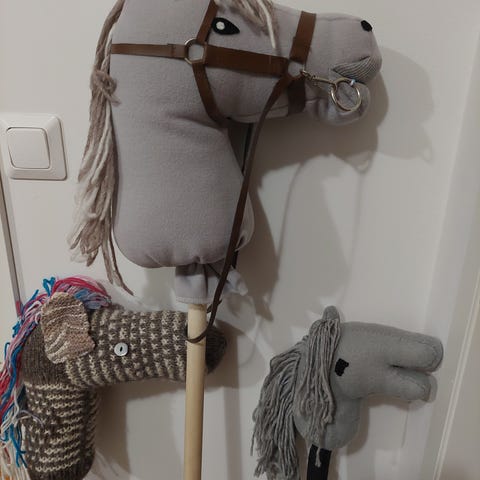 Myydään keppihevosia, joista 2 on Hööksin hevosia ja 1 on itsetehty.