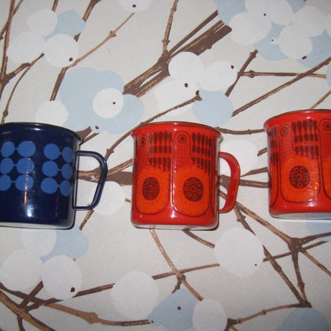 Myydään Finel Orient emalimuki. Kunto hyvä/kohtalainen. Emalissa pintakulumaa, ja sisäpuoli kuvan mukaisessa kunnossa. Pohjassa naarmuja.