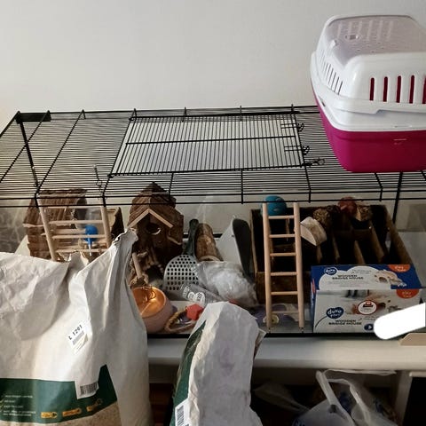 Lasinen terraario metallikehyksellä, jossa metallinen verkko-osa kannessa. Käytettynä ostettu väliaikaiseksi asumukseksi pienelle hamsterille. Sisällä ollut purua ja puhdistus jää ostajalle. Tarjota saa ja myyn mikäli tarjous miellyttää!