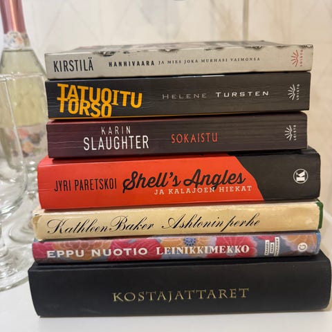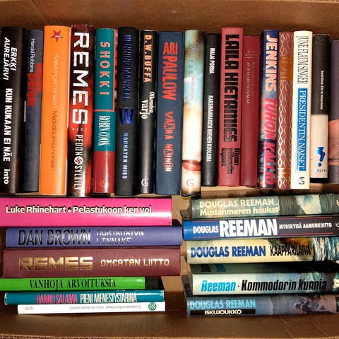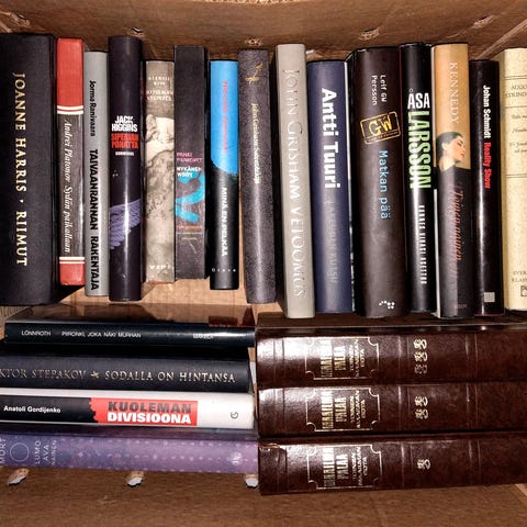 Annetaan kuvan mukainen laatikollinen sekalaista kirjallisuutta.