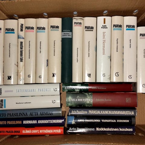 Annetaan kuvan mukainen laatikollinen sekalaista kirjallisuutta.