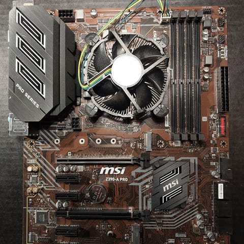Socketin suojana joku celeronin prossu ja vakio cooleri.