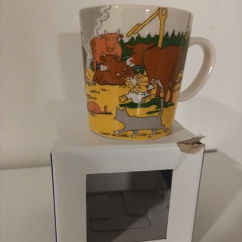 Arabian tuotannossa 1990- luvulla ollut muki, jossa on pingviiniaiheinen kuosi. Mukin materiaali on posliinia. Heljä Liukko-Sundströmin suunnittelema. Kuin uusi.