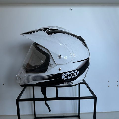 Löytyy myös niskatuen pariksi laadukas Shoei kypärä, käytetty muutamia kertoja kelkkailussa. Kypärässä vakiona visiiri ja voidaan käyttää myös normaalien kelkka-/crossilasien kanssa. OVH aikoinaan n. 500€ ja nyt edullisesti hintaan 150€. Kypärä on erinomainen vaativiin keliolosuhteisiin, jossa visiirin tai lasien huurtuminen on haaste. Toimii erinomaisesti pakkasella ja kylmä viima ei jäädytä naamaa.