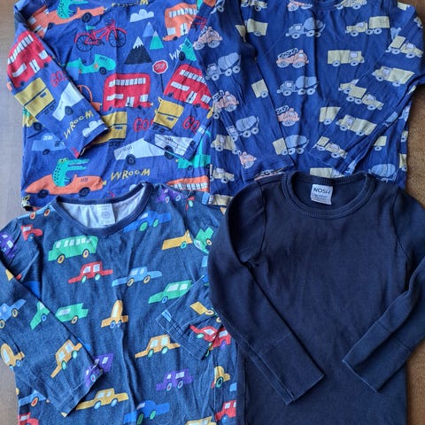 4 kpl pitkähihaisia paitoja ja 1 kpl T-paita.