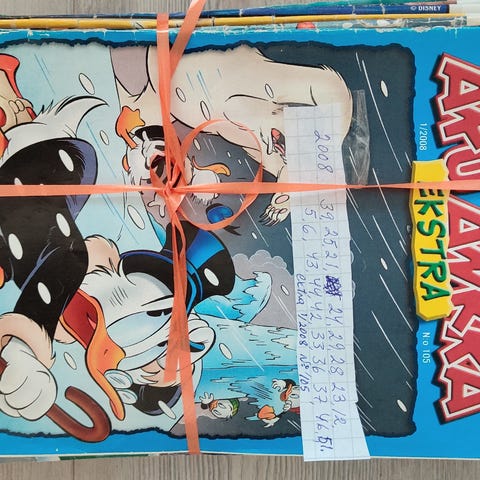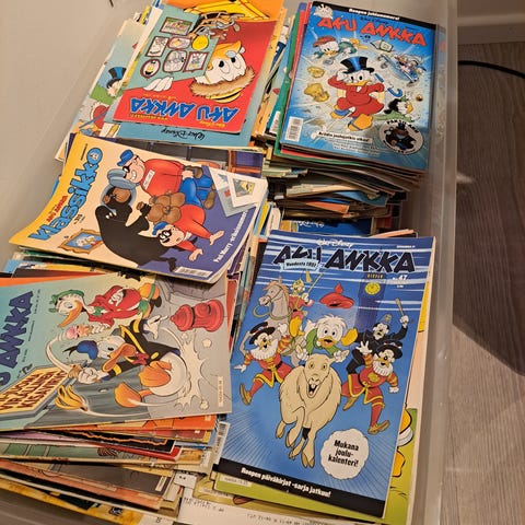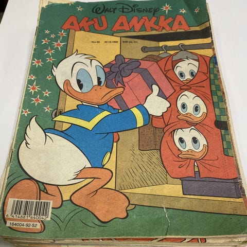 Myydään kuvan mukaisia osa jo vähän kovia kokeneita vanhaja Aku Ankka lehtiä kolme lehtikansiollista. (364)