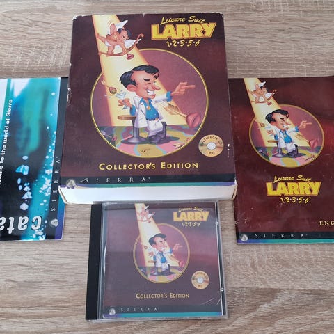 Leisure Suit Larry PC-peli sisältää peli levyn, alkuperäisen kotelon ja ohjeet