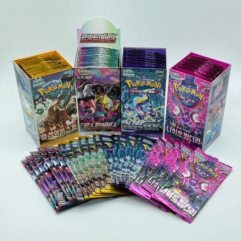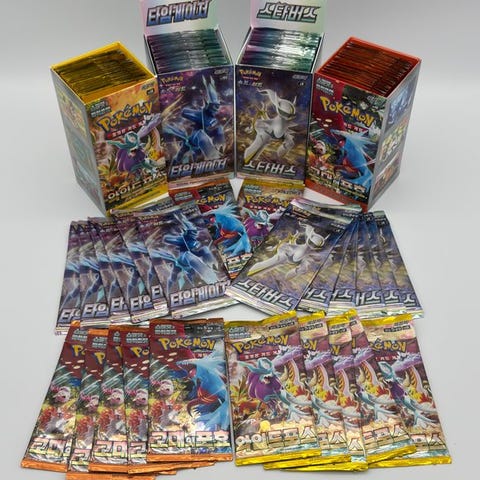 Tämä erä sisältää 24 alkuperäistä, sinetöityä Pokémon-korttipakkausta koreaksi, jaettu neljään eri kokoelmaan. Jokainen pakkaus sisältää 5 korttia, mikä tekee yhteensä 120 korttia löydettäväksi.