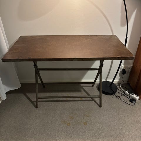 Tyylikäs Tanskalaisen Randersin valmistama taitettava työpöytä, jossa on valkoinen laminaatti pöytälevy puun värisellä reunuksella ja metalliset jalat. Pöytälevy on suorakulmainen ja sen reunat ovat puunväriset, mikä tuo kontrastia moderniin ilmeeseen. Pöytä on suunniteltu kestämään päivittäistä käyttöä ja se sopii hyvin toimistoympäristöön tai kotityöpisteeseen sekä sen saa taitettua pieneen tilaa säilöön.Ota yhteyttä asiakaspalveluun, mikäli useampi kiinnostaa. Varastossa saattaa löytyä useampi tarvitessa.Tämä pöytä edustaa modernia toimistotyyliä, jossa yhdistyvät käytännöllisyys ja yksinkertainen muotoilu. Randers on tunnettu laadukkaista ja ergonomisista kalusteistaan, jotka on suunniteltu parantamaan työympäristöä. Pöydän selkeälinjainen muotoilu tekee siitä ajattoman valinnan.Pöydän pinnassa on joitakin käytön jälkiä, kuten pieniä naarmuja ja kulumista reunoissa. Taittomekanismi kätevä.