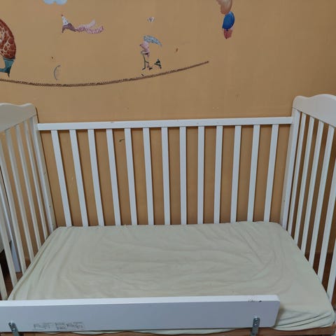 Pinnasänkyyn on porattu kaksi ruuvia alaosaan jolloin sänky saatu toimivaksi myös isommalle lapselle, näistä siis pienet jäljet sivussa mutta ei vaikuta käyttöön.