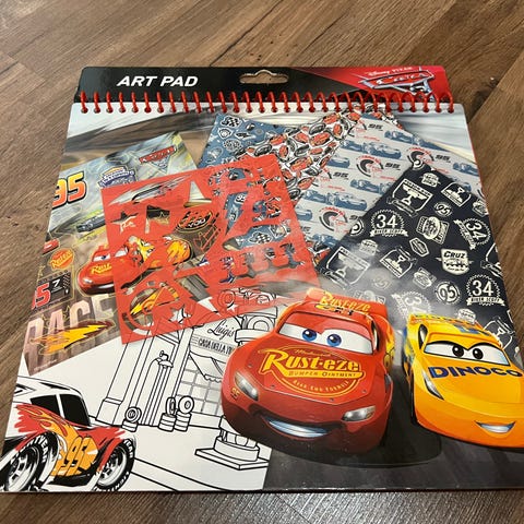 Ehjä punainen wc-istuin, jossa on Autot-sarjan kuvitus. Sen saa hakea 3 eurolla.