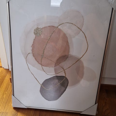 Tässä on helposti kiinnitettävä taulu, johon on myös erittäin helppo vaihtaa kuvat! Sävynsä puolesta se sopii useampaan kotiin ja se on kuntonsa puolesta kuin uusi!